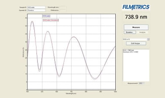 - F20膜厚测量系统通过对薄膜表面和与基板界面的反射光进行光谱分析,可在约2秒内轻松测量透明或半透明薄膜的膜厚、折射率和消光系数。